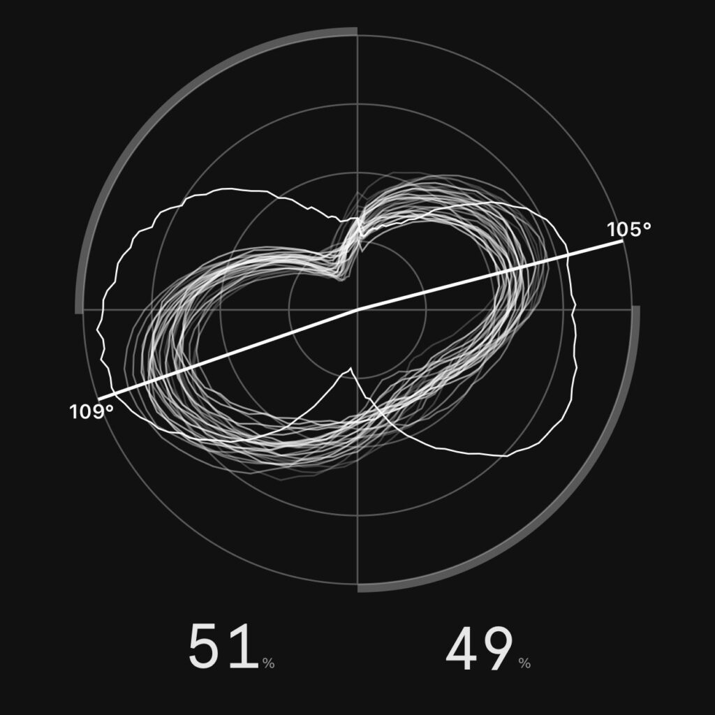 左足の「リリースタイミング」を意識する: 左脚は51%と十分な出力があるので、これ以上強く踏む必要はありません。むしろ**「5時の位置で踏み込みを終える」**意識を持ち、早めに脱力して引き足に移行してください。